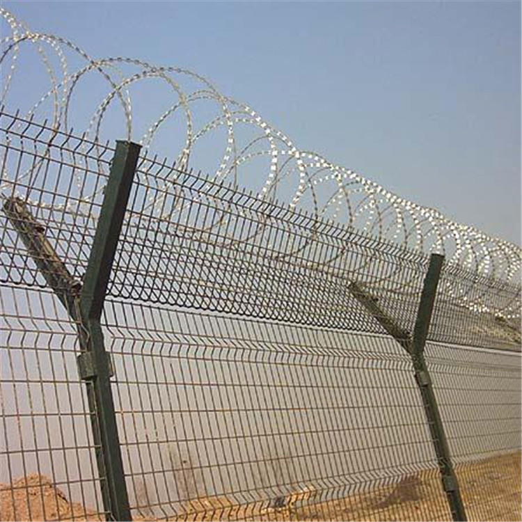 監(jiān)獄圍墻隔離網(wǎng)又稱作“Y型安全防御護(hù)網(wǎng)”,是由V型支架立柱,加強(qiáng)型焊接片網(wǎng),安全防盜連接件和熱鍍鋅刀片刺籠組成強(qiáng)度和安全防御性級(jí)別很高。近年來,被廣泛應(yīng)用在監(jiān)獄,軍事基地等高安全場(chǎng)所。在監(jiān)獄圍墻隔離網(wǎng)頂部加裝刀片剌絲、刀片剌繩后又很好的增強(qiáng)了安全防護(hù)性能。采用電鍍、熱鍍、噴塑、浸塑等防腐形式。產(chǎn)品造型美觀、花色多樣,既起到圍欄作用,又起到美化作用。由于具有安全性高、防攀爬能力好網(wǎng)片連接方式采用特制sbs緊扣件,有效防止人為的破壞性拆卸橫向四道折彎加強(qiáng)筋,使網(wǎng)面強(qiáng)度顯著增加。