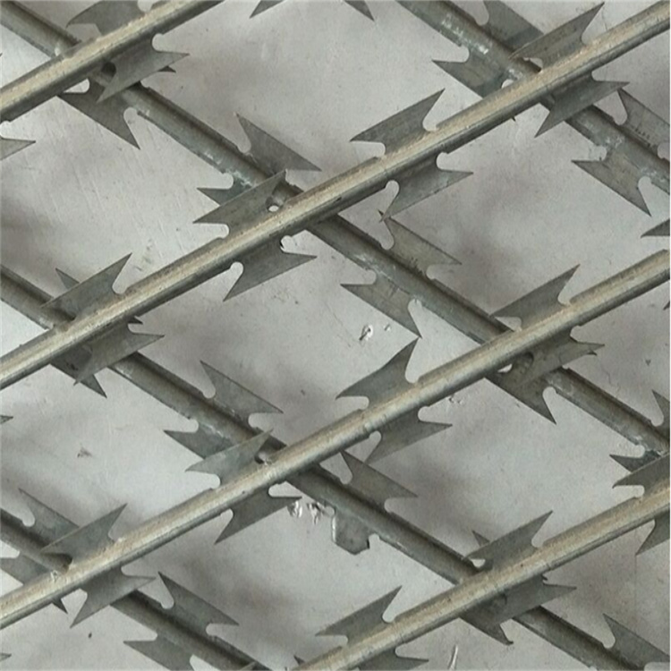 從技術(shù)設(shè)計(jì)與功能層面看,現(xiàn)代焊接刀刺網(wǎng)通常由高強(qiáng)度鋼絲焊接成堅(jiān)固的菱形網(wǎng)片,其核心特征在于網(wǎng)片上精密焊接的鋒利刀片。這種結(jié)構(gòu)結(jié)合了物理阻隔與深度威懾雙重特性。堅(jiān)固的網(wǎng)體能夠有效阻擋和延緩沖擊,而密集排列的鋒利刃口則能顯著增加攀爬的難度與風(fēng)險(xiǎn),從心理上極大遏制了逾越企圖。相較于傳統(tǒng)鐵絲網(wǎng),它在不顯著增加材料消耗的前提下,通過(guò)結(jié)構(gòu)設(shè)計(jì)實(shí)現(xiàn)了防護(hù)效能的倍增。