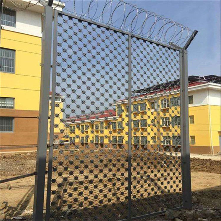 結構設計與安裝施工同樣遵循具體標準。立柱規格多為50×50毫米或60×60毫米方管,壁厚通常為2.0-2.5毫米,頂端設計為Y型或V型支架并向外側傾斜一定角度,以增強整體防護效果。立柱需埋置于混凝土基座中并填實,基座采用C20以上強度等級混凝土預制,確保立柱穩固。對于頂部加裝的刺絲網或刀刺網,其股線材料、刺結間距、綁扎方式等均有詳細規定,例如刺鋼絲股線需經過防腐處理,刺結間距通常為100毫米。這些標準共同構成了鋼網墻從材料源頭到安裝完成的完整質量控制體系,為其在特殊場所的長期穩定使用提供保障。