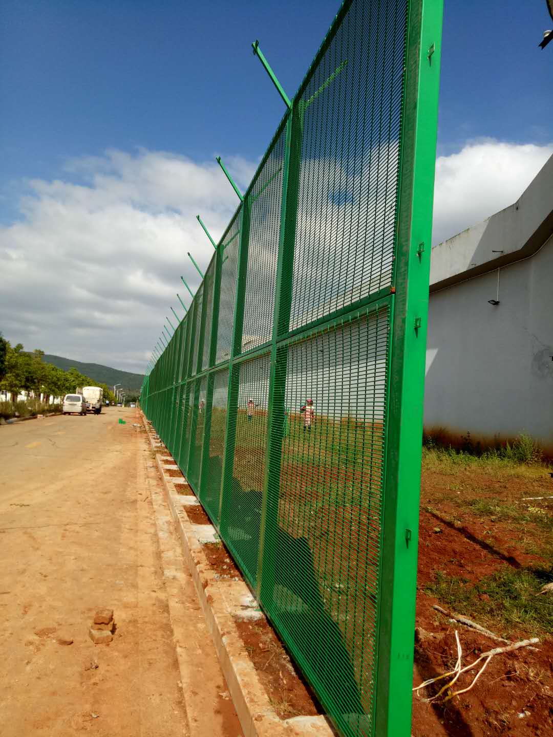 保稅區(qū)圍欄 產(chǎn)品采用斜方網(wǎng)格焊接構(gòu)造(仿綠籬)是一種新興的隔離網(wǎng)墻,在保證強度和防護性能不變的狀況下更接近人們的審美感受,潤滑細膩的塑層亮麗鮮艷的顏色、裝飾性好。 …