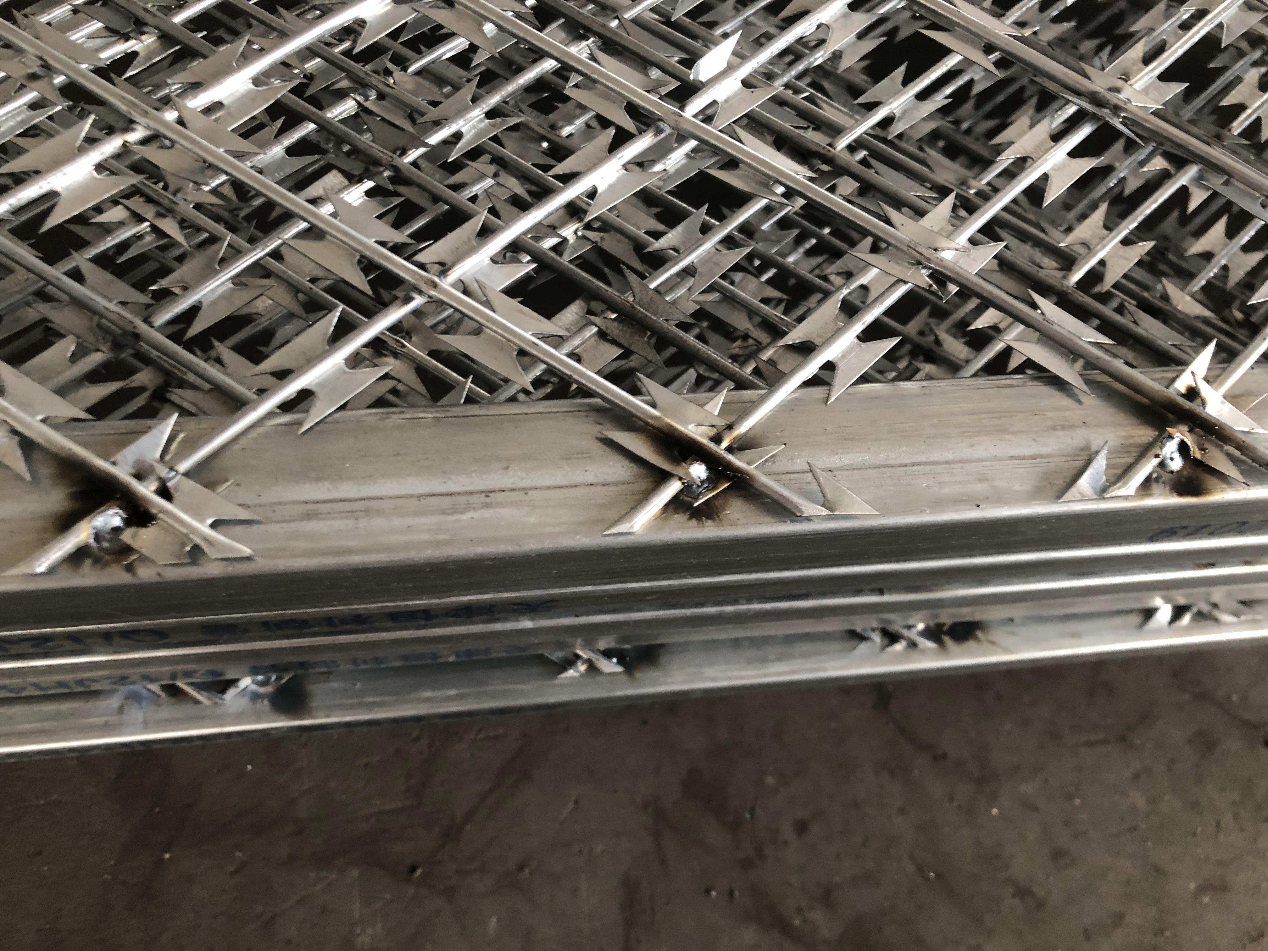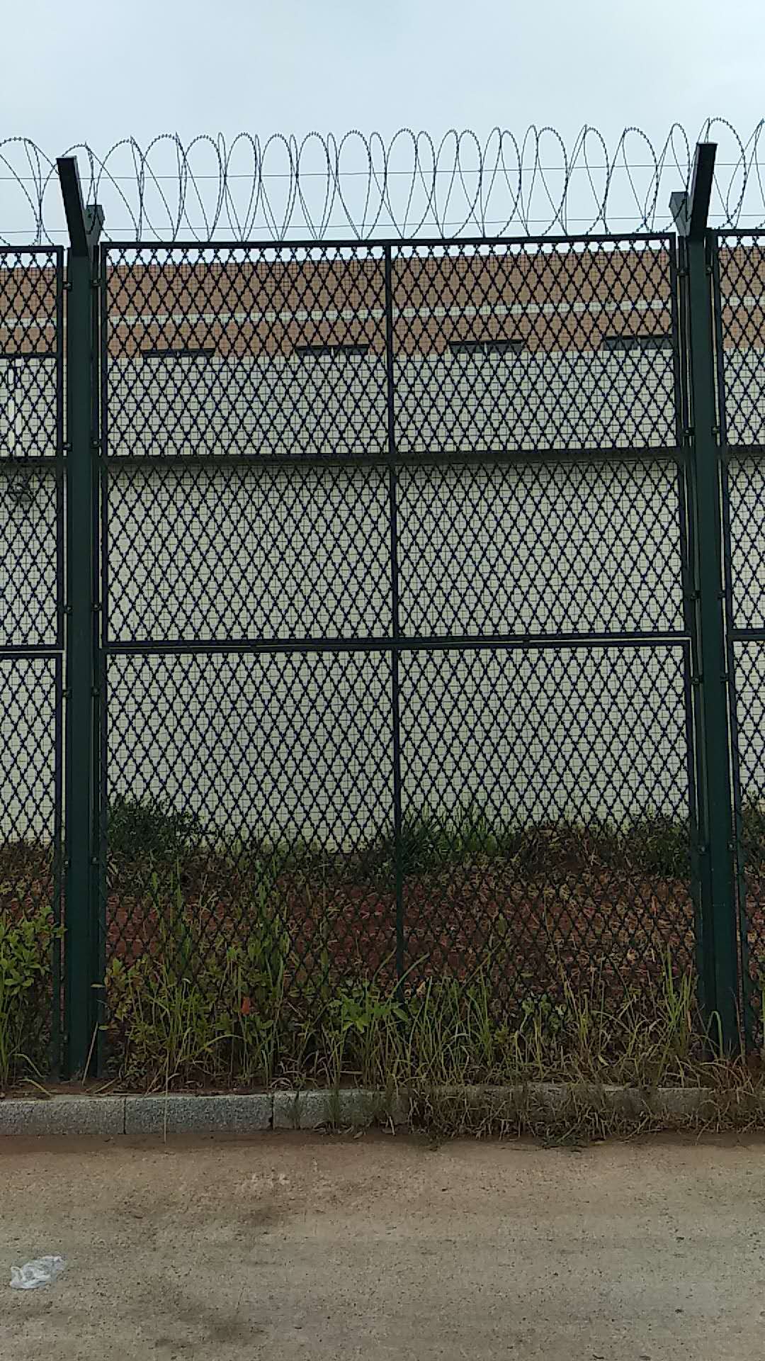 監獄護欄是由立柱和網片組成,在網體頂部焊y型托架,圍圈盤放刀片刺絲,也有的在網體的上中下橫向,縱向,斜向交錯綁定刀片刺絲,能有效防止攀爬逃竄,這樣威懾力更大,防范效果更好。