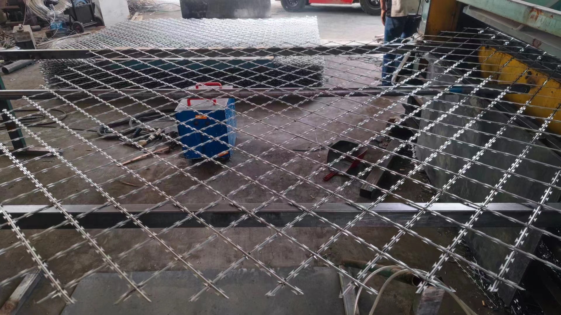 武警巡邏道隔離網 看守所刀刺護欄的安裝步驟和之前講過的刀刺隔離網安裝步驟基本一樣。需要特別注意的地方是網片帶刀刺,扎手。安裝過程中會給工人帶來不便。