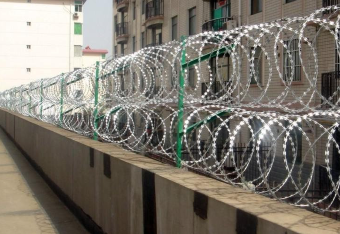 ?塑料漆的刀片刺繩的優點是抗壓能力強,刀片刺繩的優點是強度高、耐銹耐腐能力強等,這樣會很大程度的進步鐵絲網的保護時刻,并且能夠運用不一樣的色彩,與四周的色彩相配合。塑料漆的色彩有許多種,能夠依據現場情況的環境合理分配。塑料漆的刀片刺繩是鋼制板材壓成刀片的形狀,或是有鐵絲做成的芯狀。由于鐵絲繩形狀特別,不能簡略觸碰,所以能起到很好的保護和分別作用。
